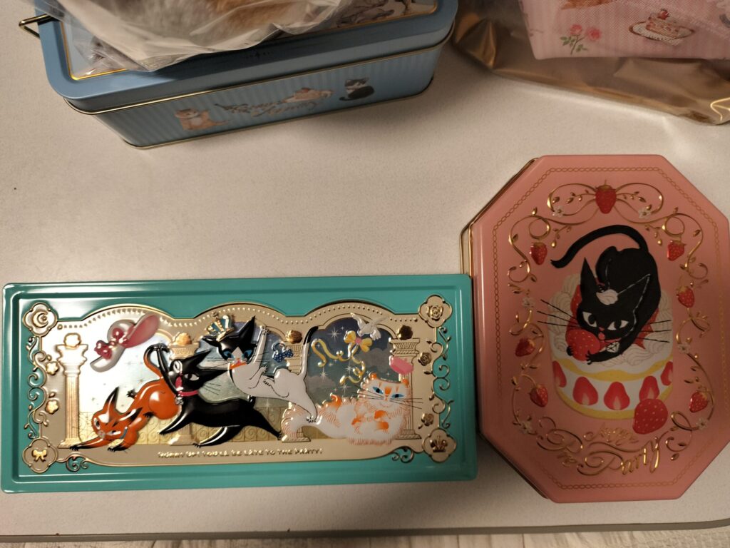 リアルな猫イラストが描かれている可愛いチョコレート缶がいっぱい(〃^∇^)o_彡☆
